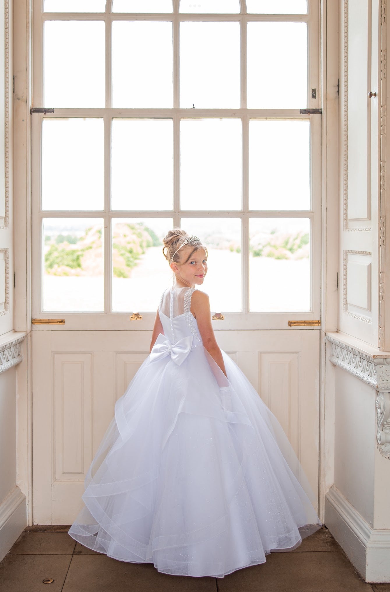 Stunning dress from our Crystal & Pearl collection. Sizes available to order from age 5 upto age 12. Orders taken instore. Prices given instore. Dresses can take upto 5 months to arrive so please make sure you leave enough time to order. Last orders taken early December.