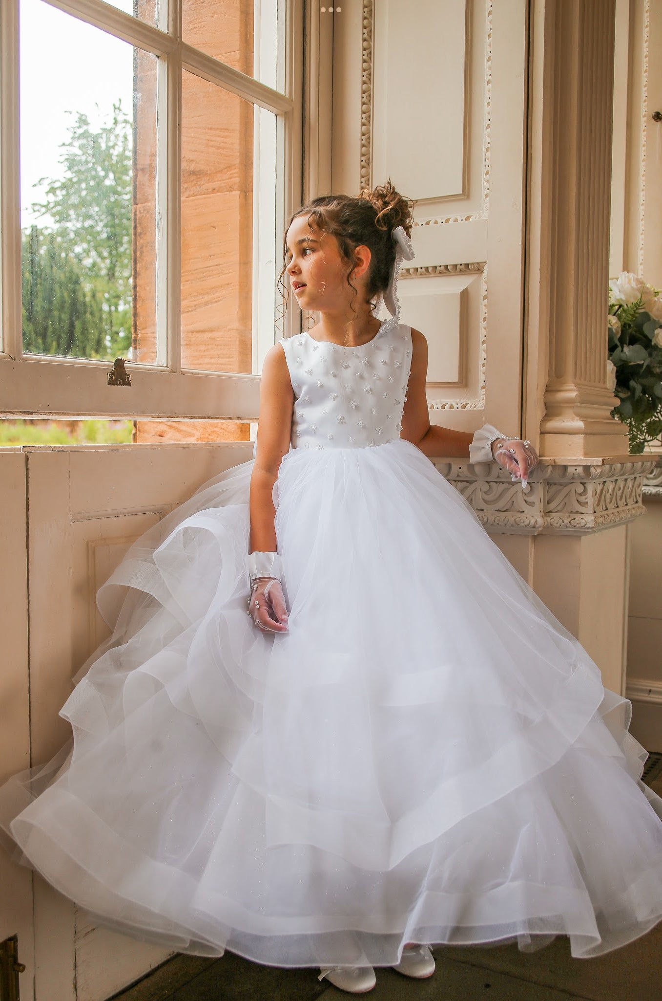 Stunning dress from our Crystal & Pearl collection. Sizes available to order from age 5 upto age 12. Orders taken instore. Prices given instore. Dresses can take upto 5 months to arrive so please make sure you leave enough time to order. Last orders taken early December.