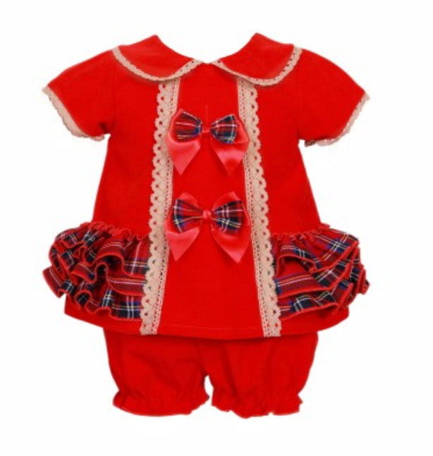 Wee me baby girl red velvet tartan dress with knickers 2431